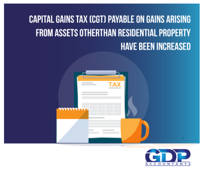 The rates of capital gains tax (CGT) payable on gains arising from assets other than residential property have been increased with immediate effect.