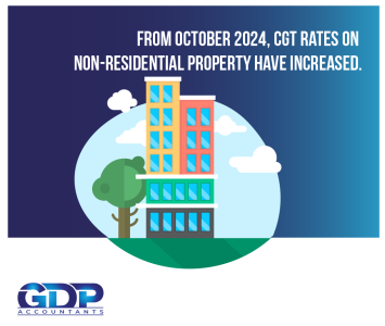 In the Autumn Budget the Chancellor announced an immediate increase to the main rates of capital gains tax (CGT). From 30.10.24, 'Budget Day', CGT is payable on the disposal of non-residential property at 18% (up from 10%) for gains falling into the taxpayer's basic rate band and 24% (up from 20%) at the higher or additional rate.